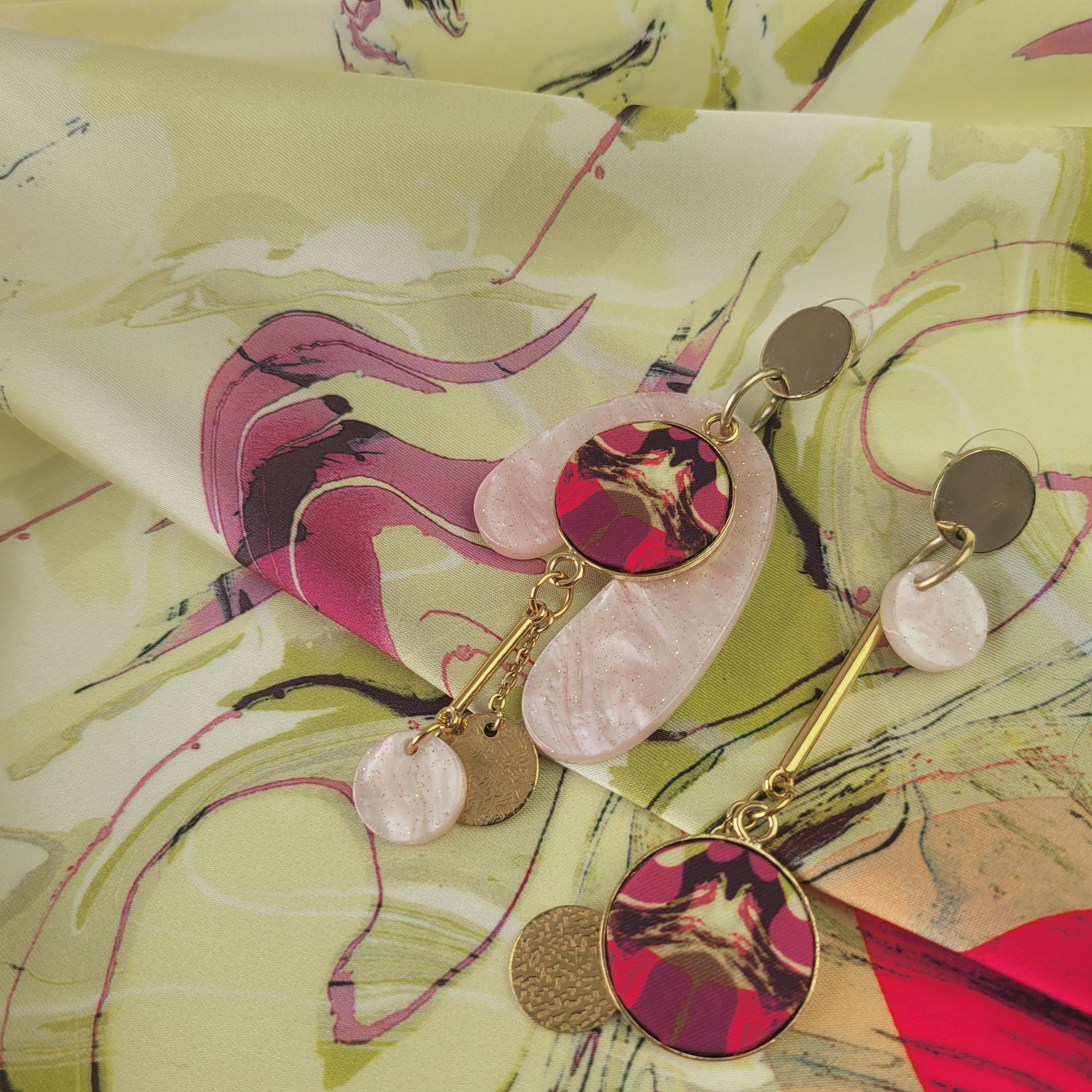 Boucles d’oreille asymétriques, attache-tige en métal hypoallergénique.
