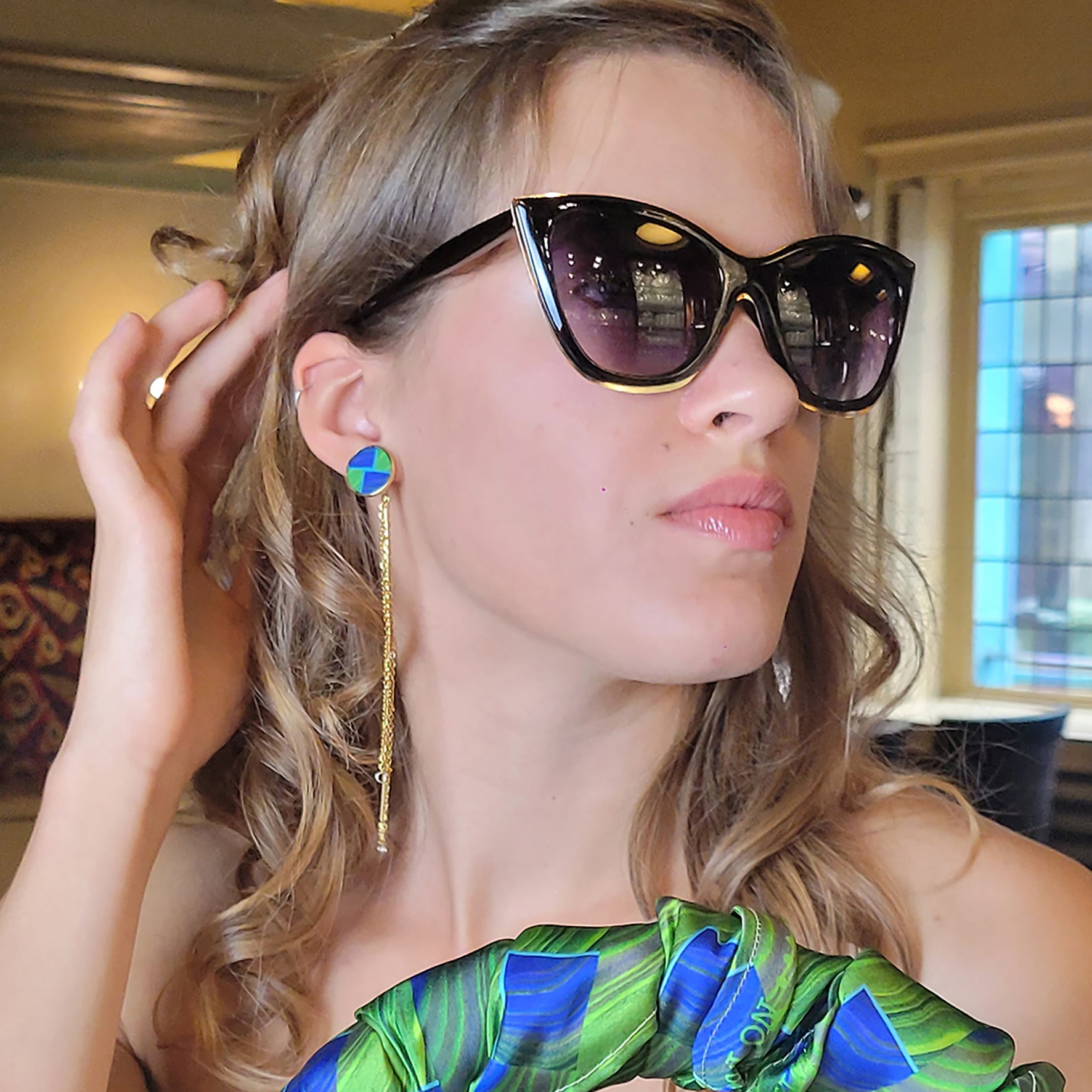 Puces d'oreille en métal hypoallergénique et tissu traité (100% recyclé).