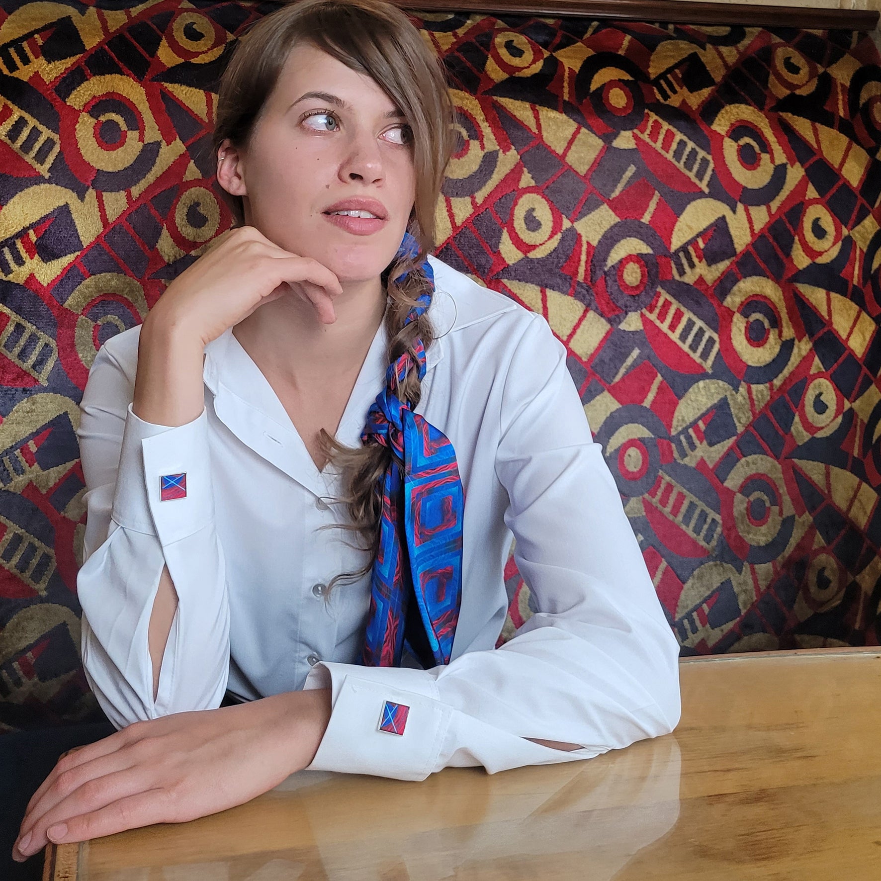 Boutons de manchette en métal et tissu traité (100% recyclé).