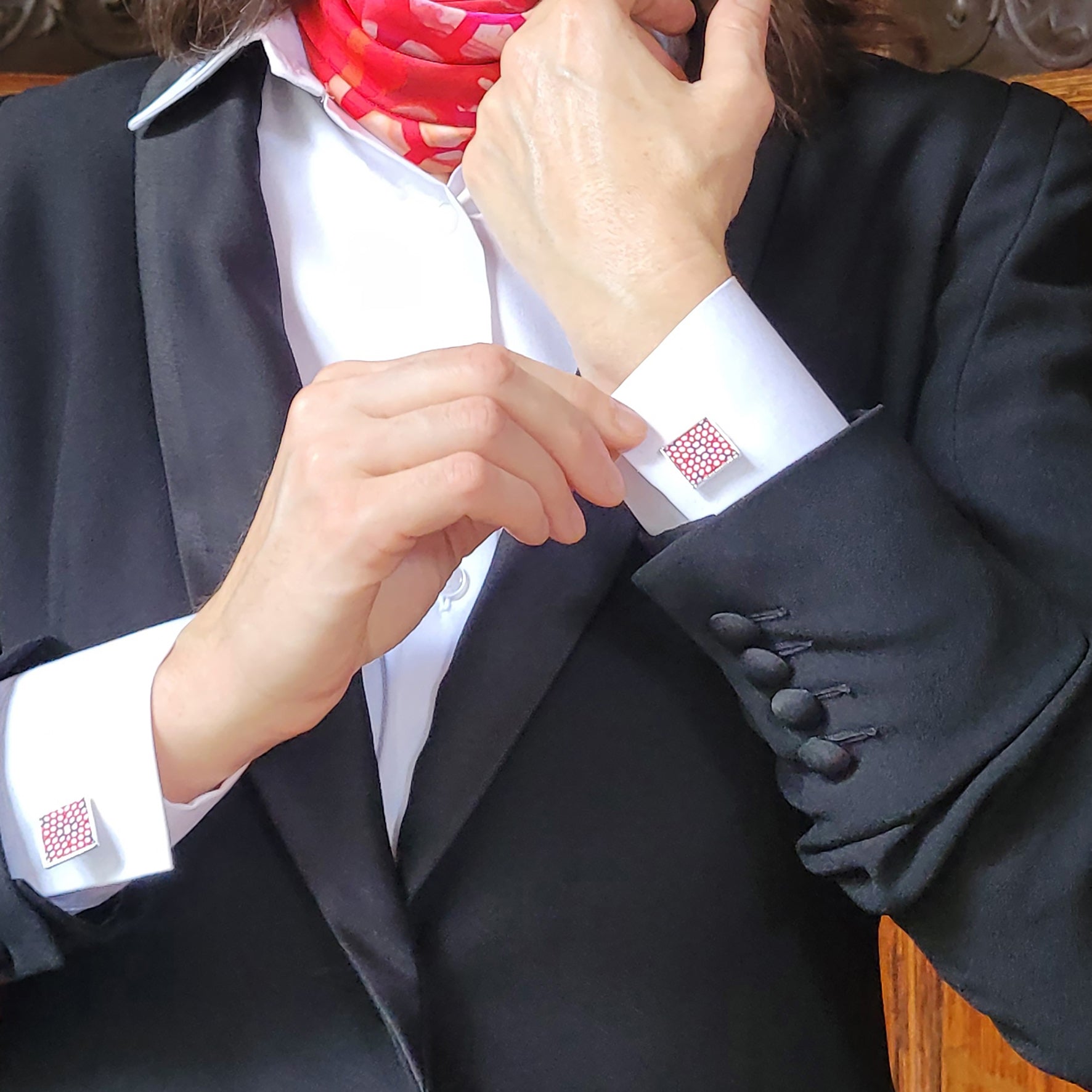 Boutons de manchette en métal et tissu traité (100% recyclé).