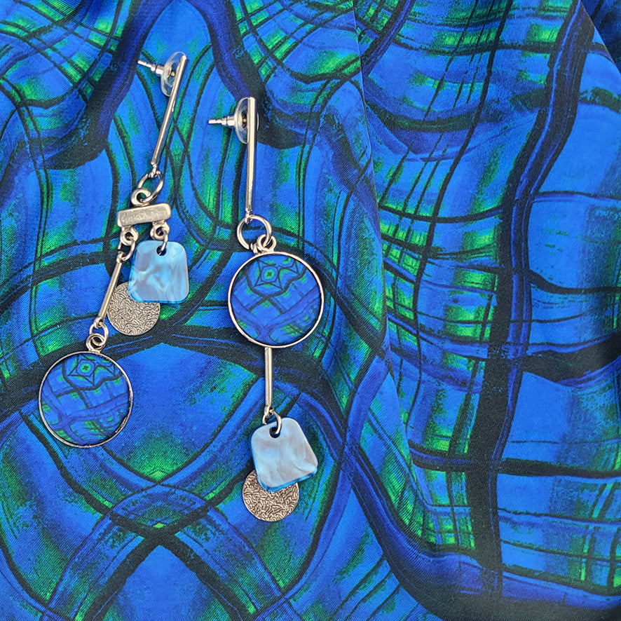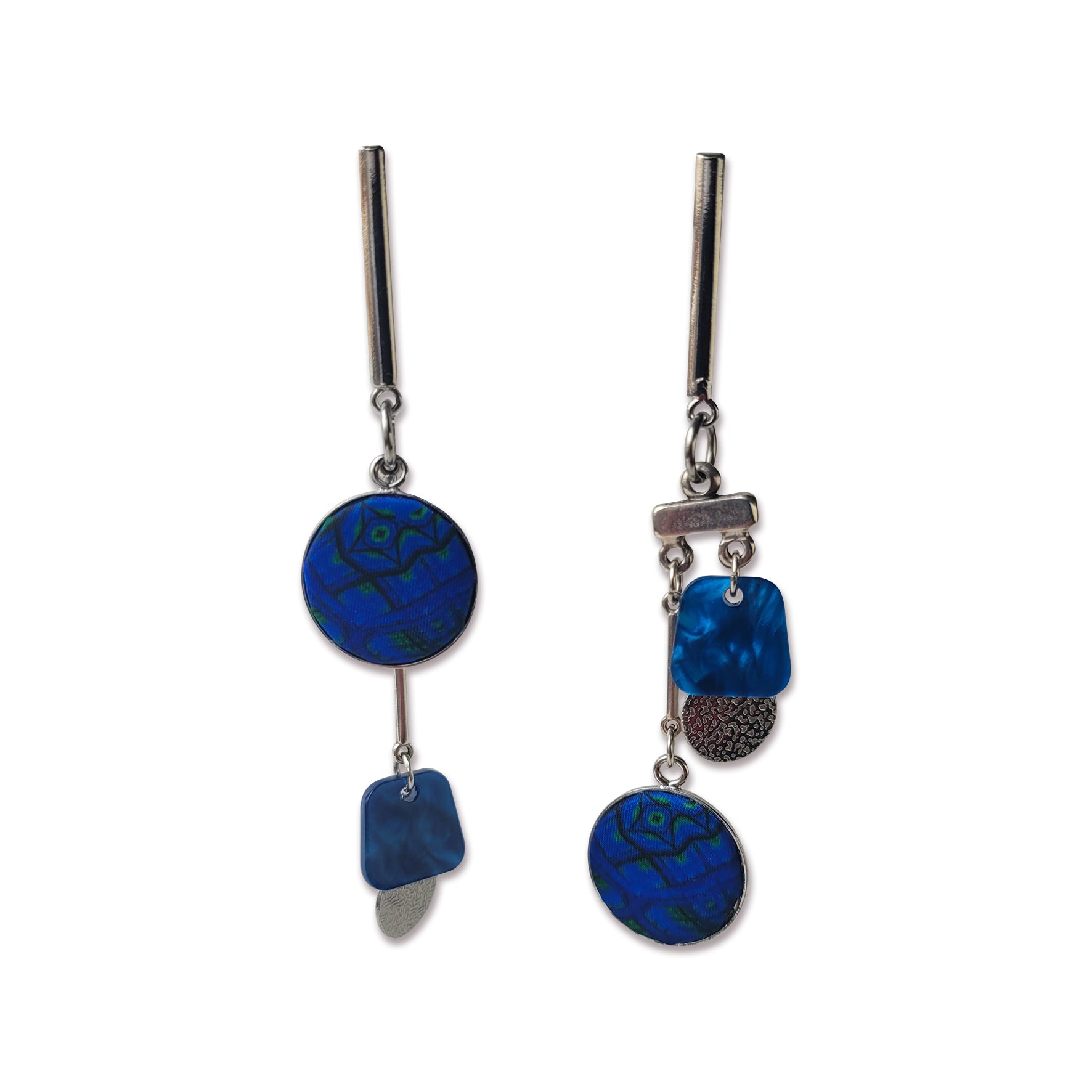 Boucles d’oreille asymétriques, attache-tige en métal hypoallergénique.