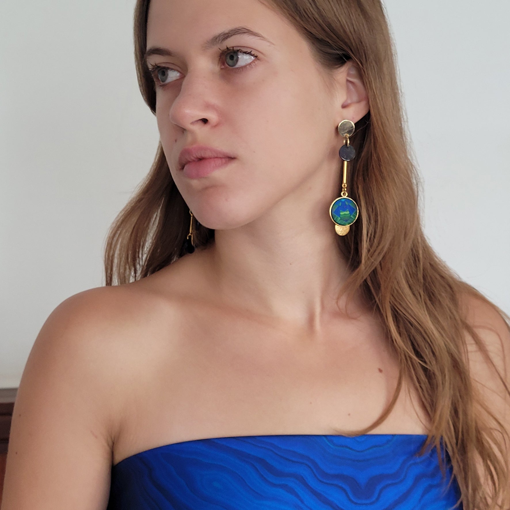 Boucles d’oreille asymétriques, attache-tige en métal hypoallergénique.