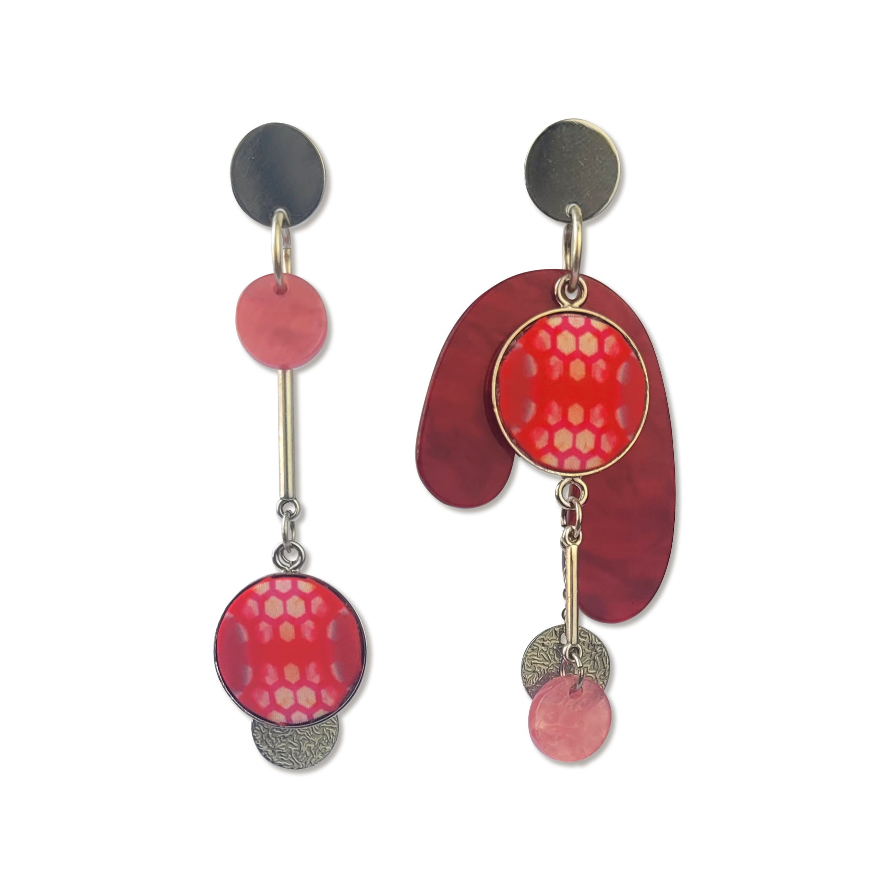 Boucles d’oreille asymétriques, attache-tige en métal hypoallergénique.