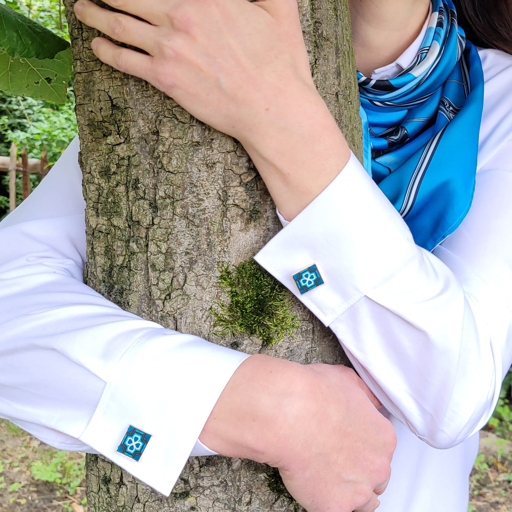 Boutons de manchette en métal et tissu traité (100% recyclé).