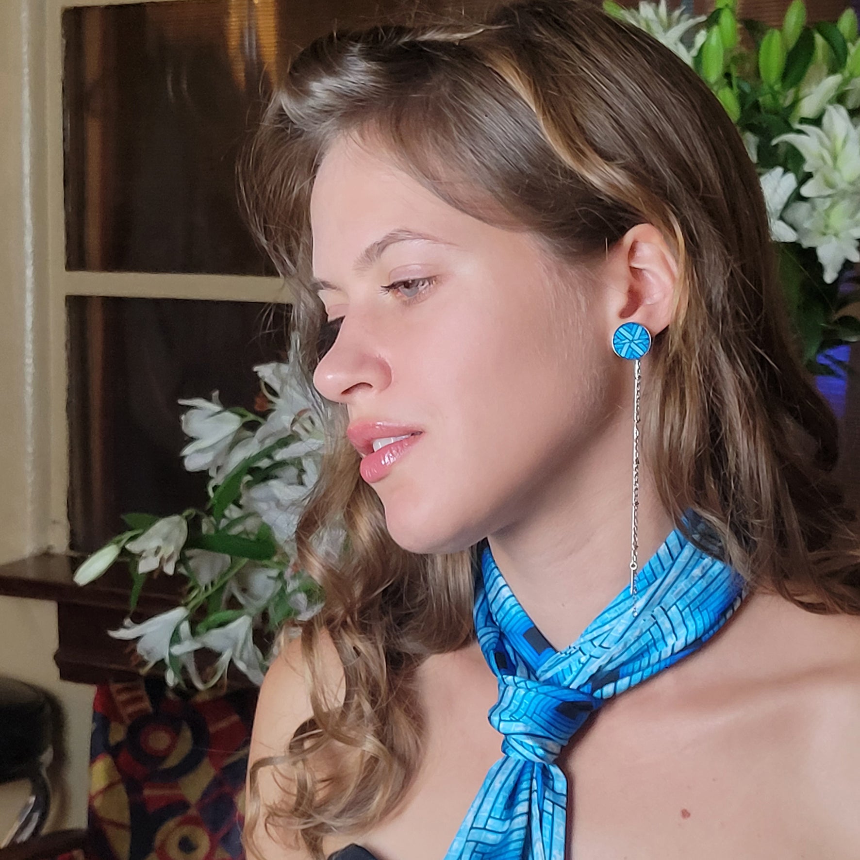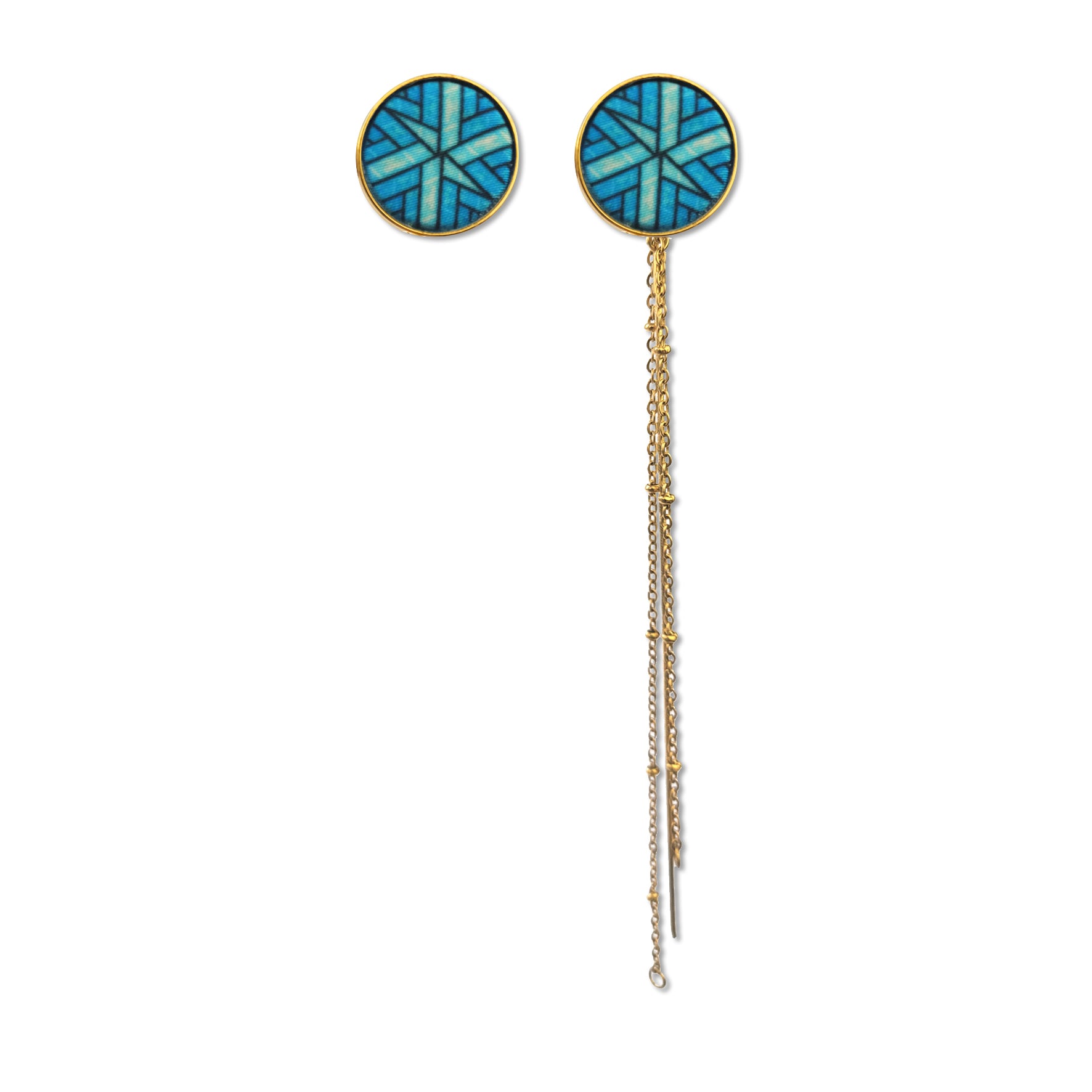Puces d'oreille en métal hypoallergénique et tissu traité (100% recyclé).