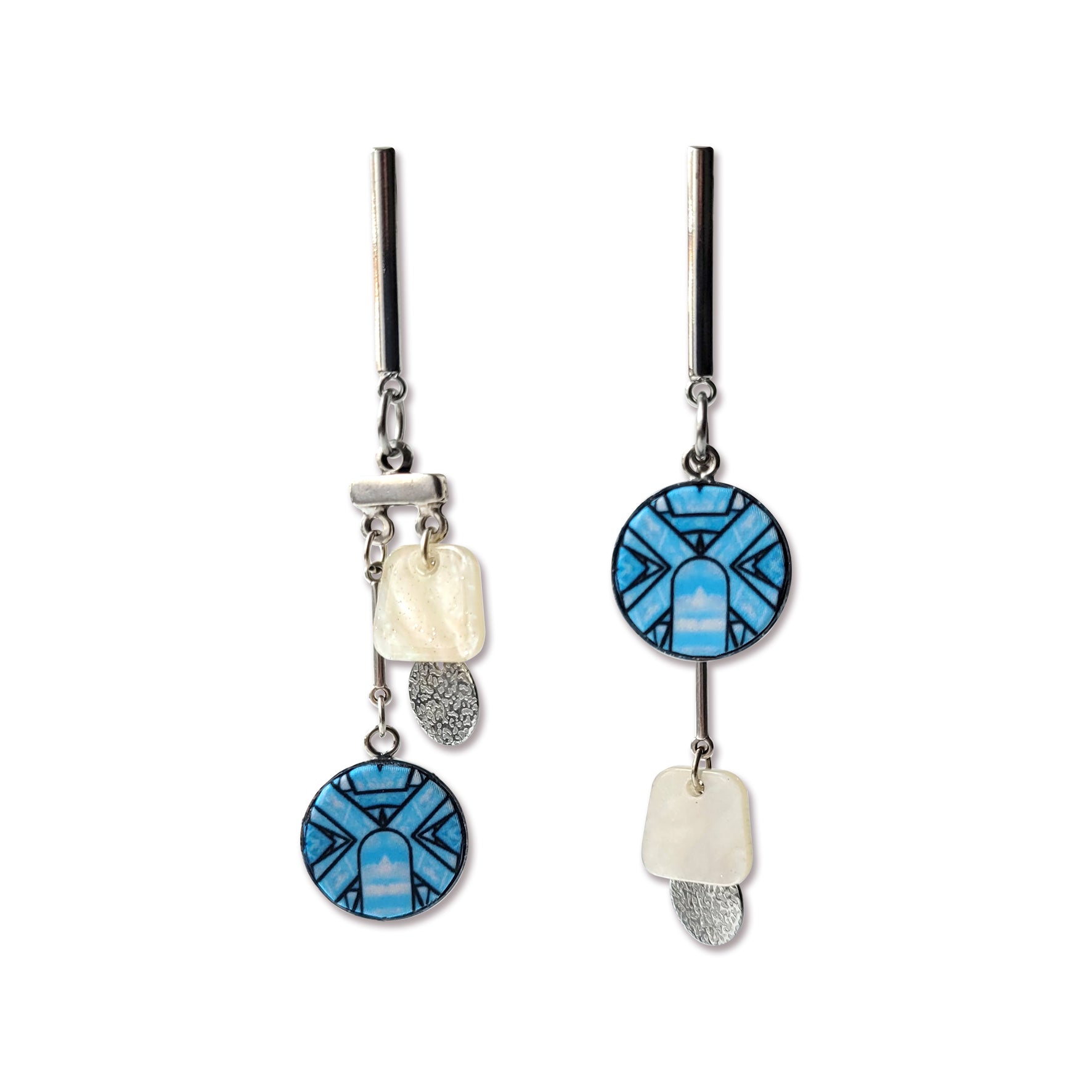 Boucles d’oreille asymétriques, attache-tige en métal hypoallergénique.